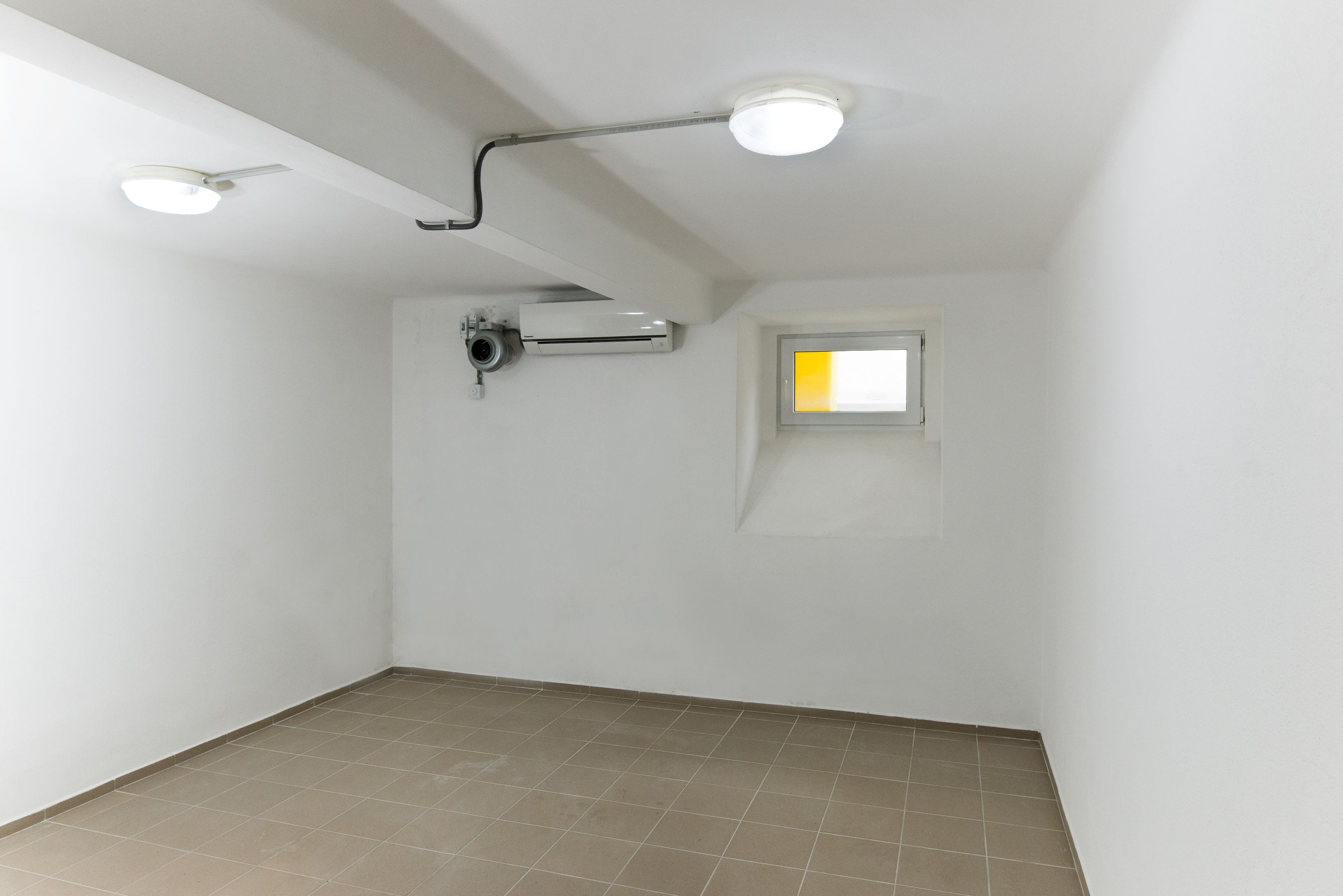 V suteréne sa nachádza 7 úžitkových miestností. 2 veľké miestnosti patria k predajniam ako sklady. V jednej ďalšej je klimatizácia. V suteréne sa nachádza aj sociálne zariadenie. Je tam privedená voda. Suterén je prístupný aj zo zadu budovy.